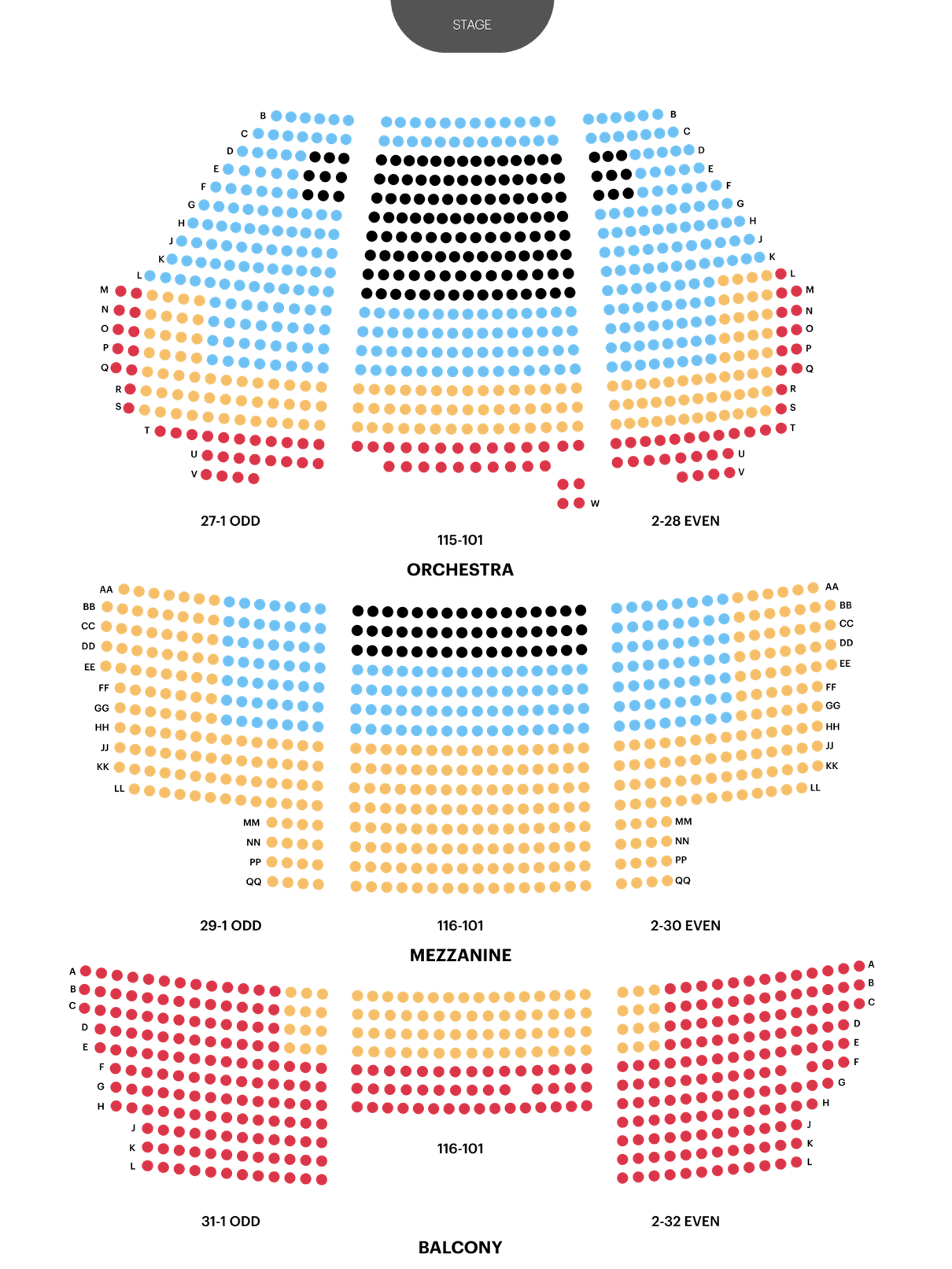 Wheelchair locations in Orchestra and Mezzanine
