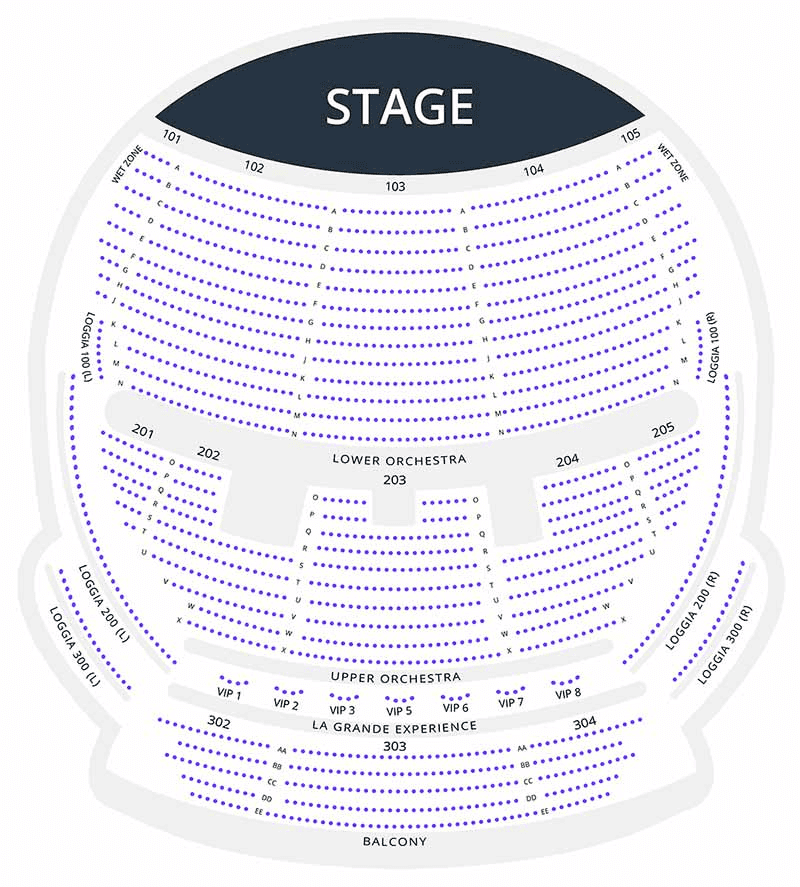 The O Theater, built specifically for the show, seats approximately 1,800 guests. Its layout includes three primary levels: