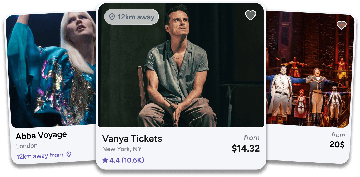У tickadoo наша місія полягає в тому, щоб зробити відкриття міст беззусильним і захоплюючим. Ми використовуємо AI-фільтри настрою для досвіду, що відповідає вашим уподобанням, допомагаючи вам забронювати театральні квитки онлайн на шоу у Вест-Енді в Лондоні, бродвейські постановки в Нью-Йорку або унікальні події в Лас-Вегасі та Дубаї. З'єднуючи дослідників із незабутніми враженнями по всьому світу у 700+ містах, ми прагнемо надихати на пригоди та створювати незабутні спогади завдяки надійним та персоналізованим рекомендаціям.